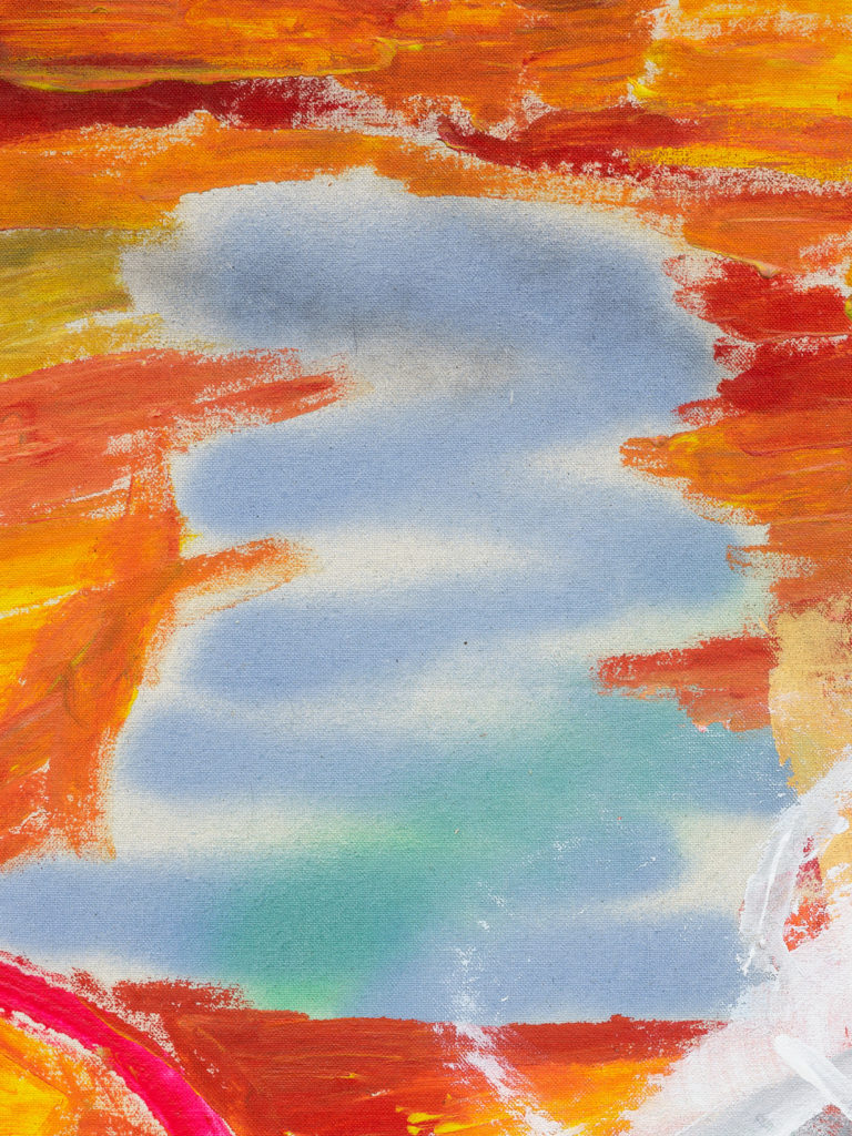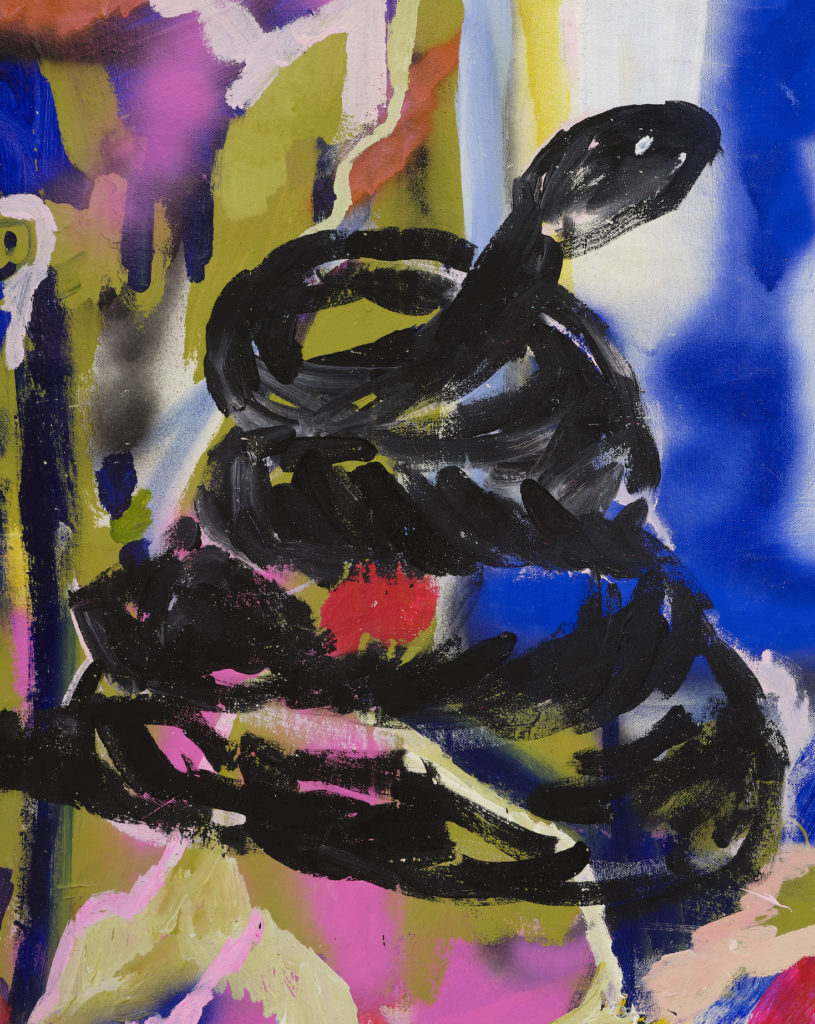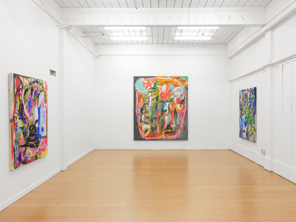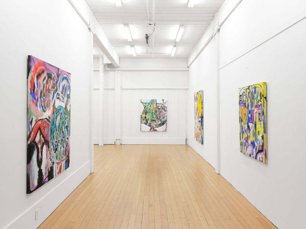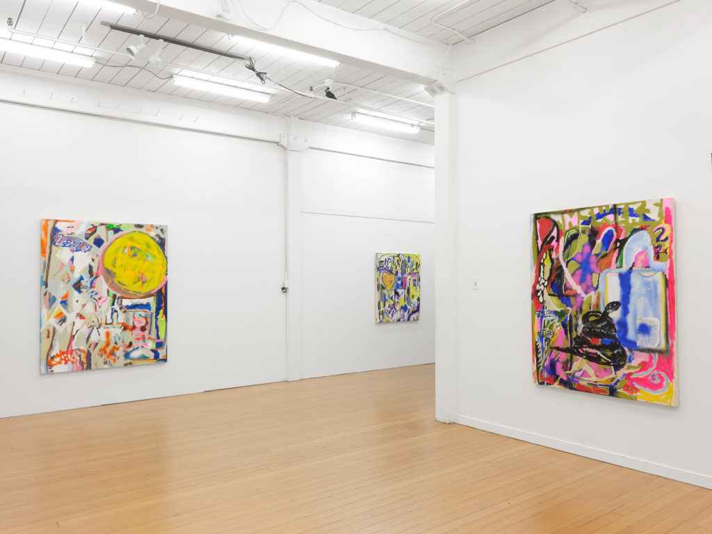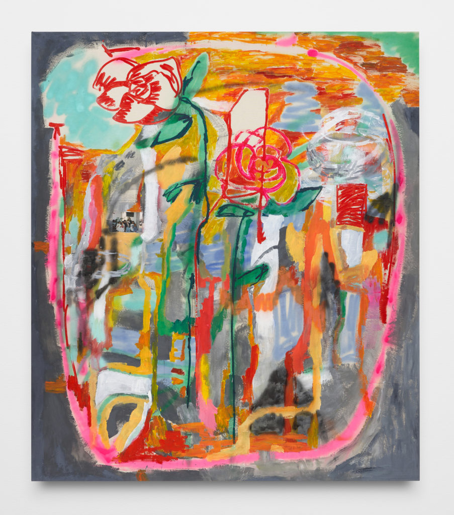 Grace Rosario Perkins renders maximalist, color-driven paintings in acrylic, spray paint, and collage on canvas. She is a free-stylist, working from intuition, and quickly; her marks are malleable, and subject to near-perpetual change as paintings materialize. The works map relationships between colors, forms, feelings, people, peoples, the past and present. They are landscapes between the mind and the world, streams of consciousness preoccupied with the ways in which life overlaps with other life.