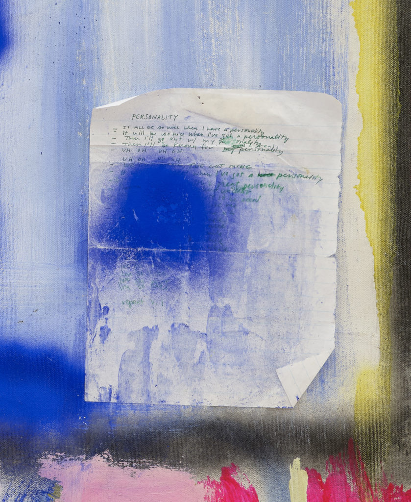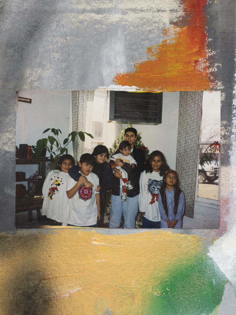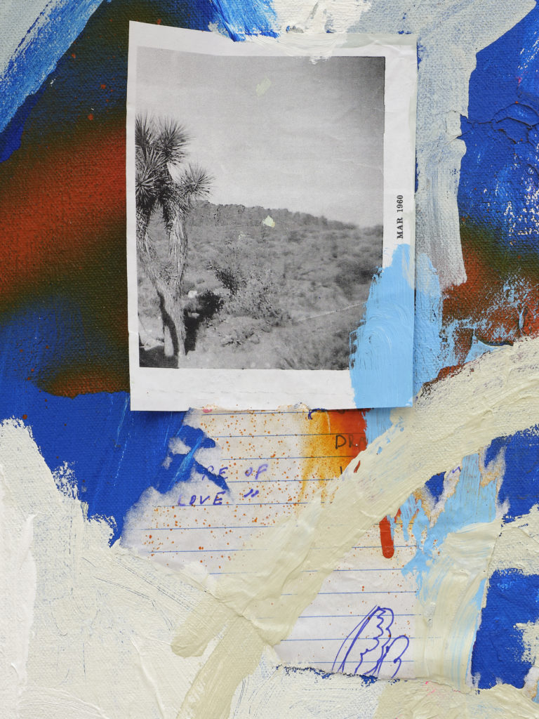 Perkins’ iconography is informed by sources as varied as bad graffiti, the NBA, and local antique malls in downtown Albuquerque, where she lives and works. She has recently incorporated family photographs, bingo cards, bumper stickers, cut remnants of past paintings, and more, forming a collage of signifiers. The works are not private, but intimate, suggesting that closeness is not only a series of codes, but its own code, both personal, familial, and complex.