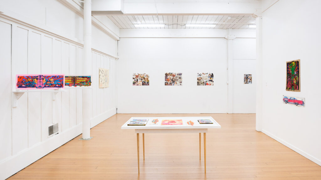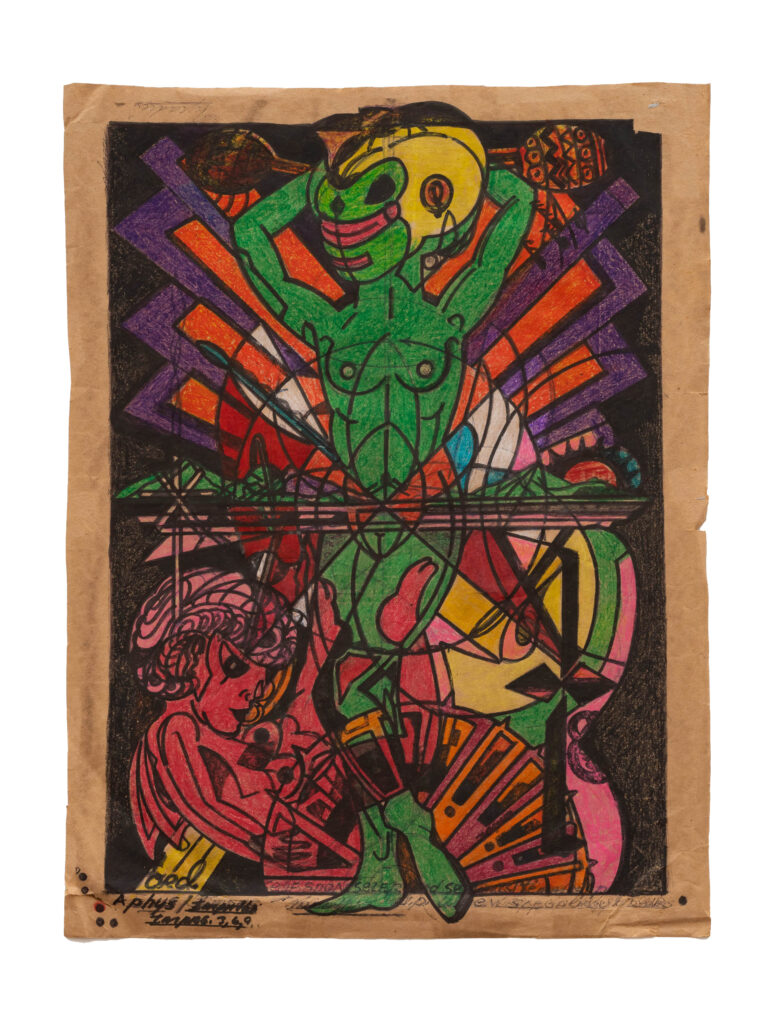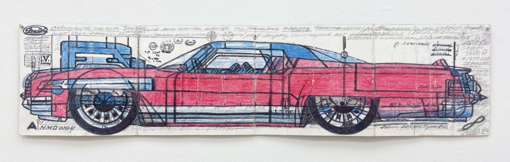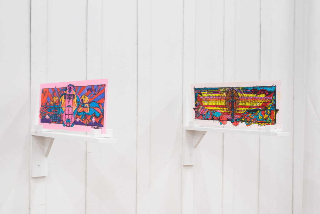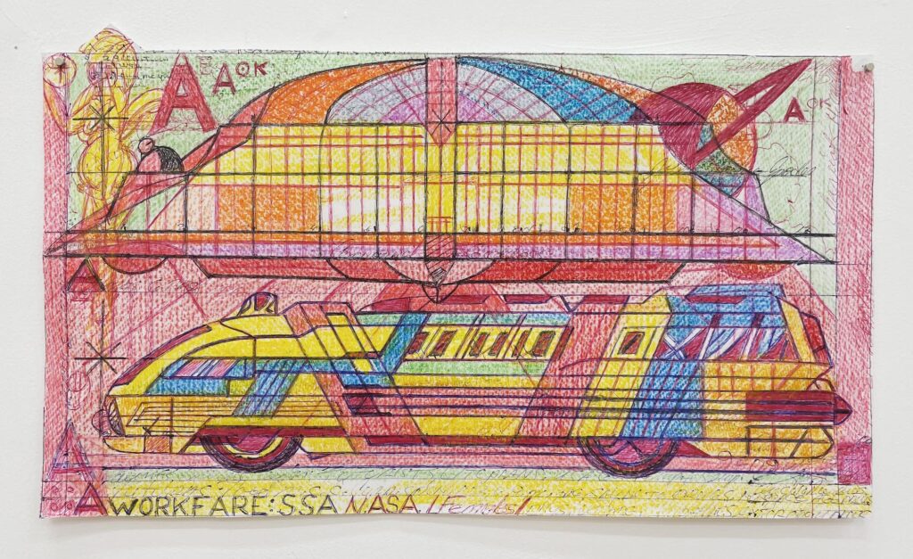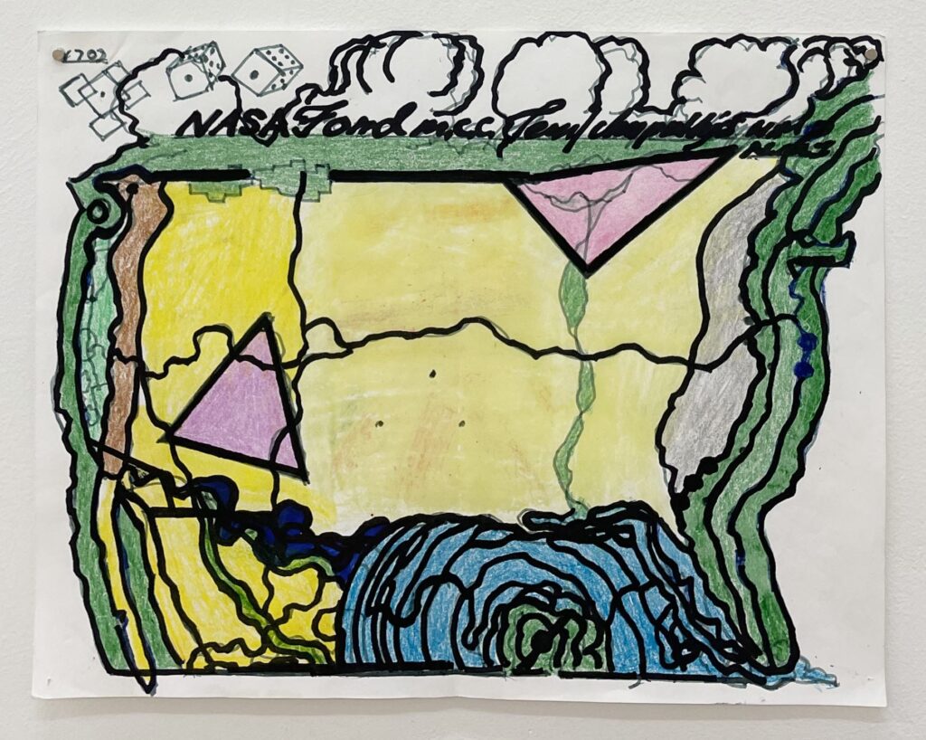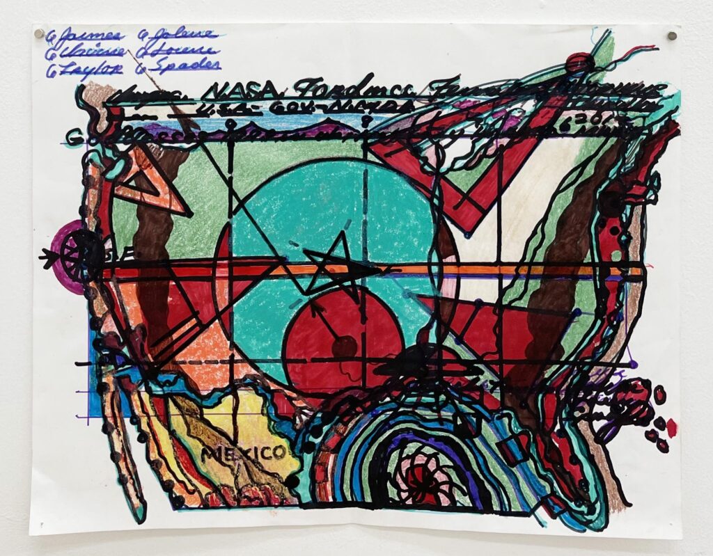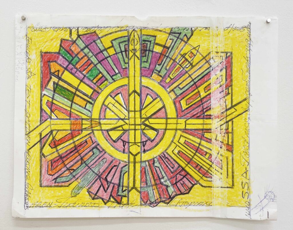 Cushion Works is pleased to present an exhibition of visionary artwork by James Irvine Taylor. From the heart of San Francisco’s Tenderloin, Taylor manifested an explosive array of signs, symbols, and schematics on paper, mostly populated by intricate automobiles against multi-colored, geometric landscapes. Taylor mapped an architecture just out of reach, and marked many of his works with the words “Futurists Utopians,” pairing the former’s yen for speed and transportation with the latter’s intentional withdrawal in search of the ideal. A network of corporate and clandestine entities, including Ford, NASA, the CIA, and FBI, populate the margins in the artist’s idiosyncratic script. Cushion Works presents a constellation of works on paper and foam core – some double-sided – and a series of notebooks, teeming and alive.