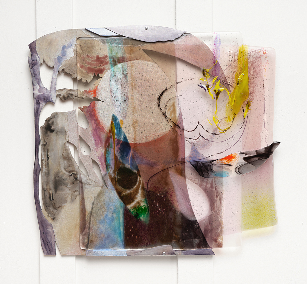 Leslie Shows incorporates assemblage, drawing, glass, and sculptural relief in mixed media works that reflexively connect painting with earth processes. Solo exhibitions include the Scottsdale Museum of Contemporary Art, the San Francisco Art Institute’s Walter & McBean Gallery, Jack Hanley Gallery, Haines Gallery, and the Bemis Center for Contemporary Art. Her work has been exhibited at the San Francisco Museum of Modern Art, the Orange County Museum of Art, Berkeley Art Museum, Yerba Buena Center for the Arts, and the 8th Mercosul Biennial in Brazil. Recent public commissions include a large-scale glass artwork for the San Francisco Central Subway and lithomosaic for a school amphitheater in Richmond, CA. Her work is in the collections of the San Francisco Museum of Modern Art, the Berkeley Art Museum, MIT List Center for the Visual Arts, and KADIST.