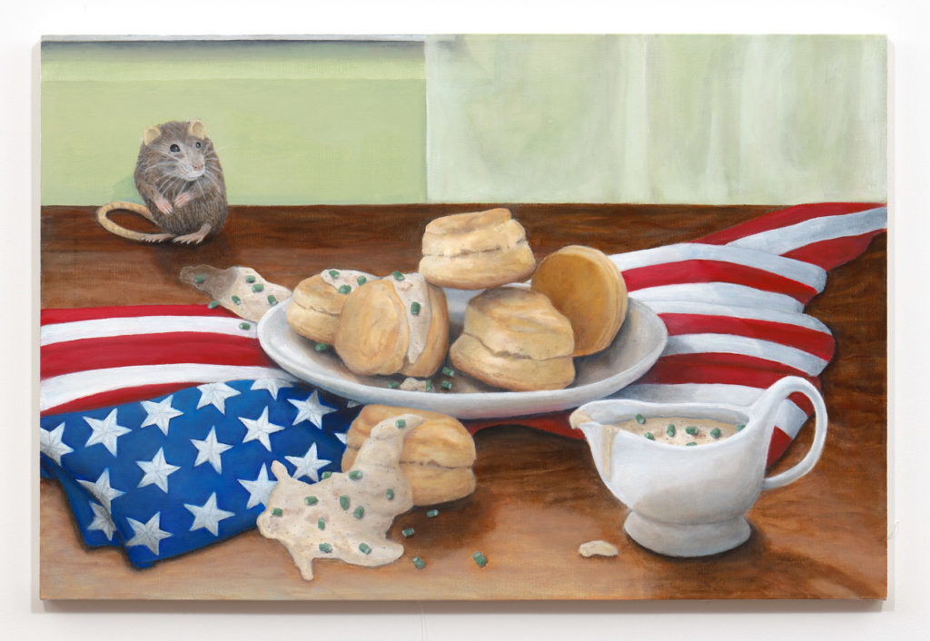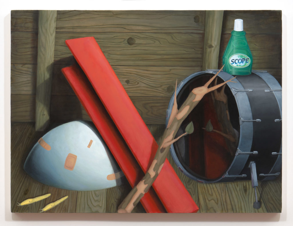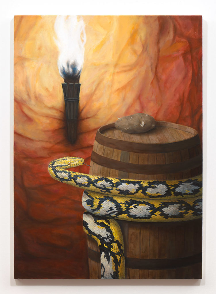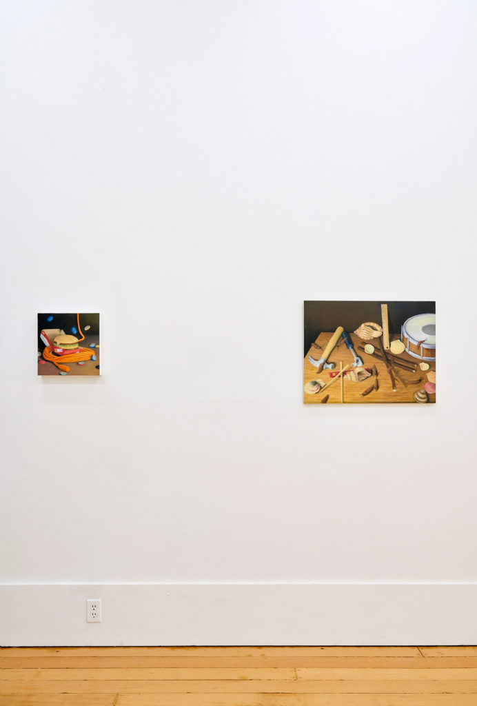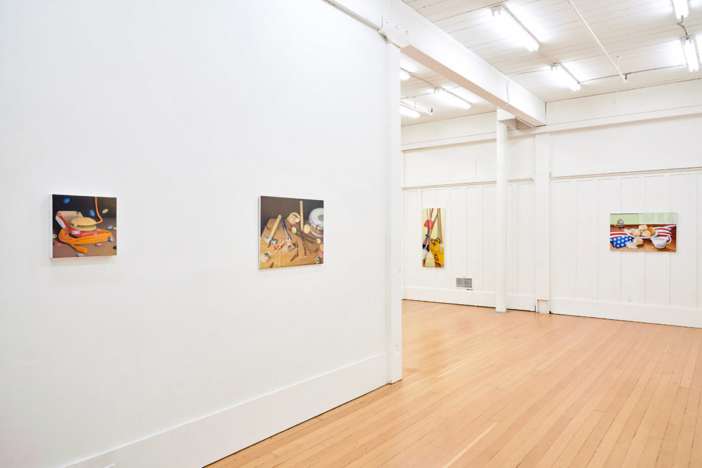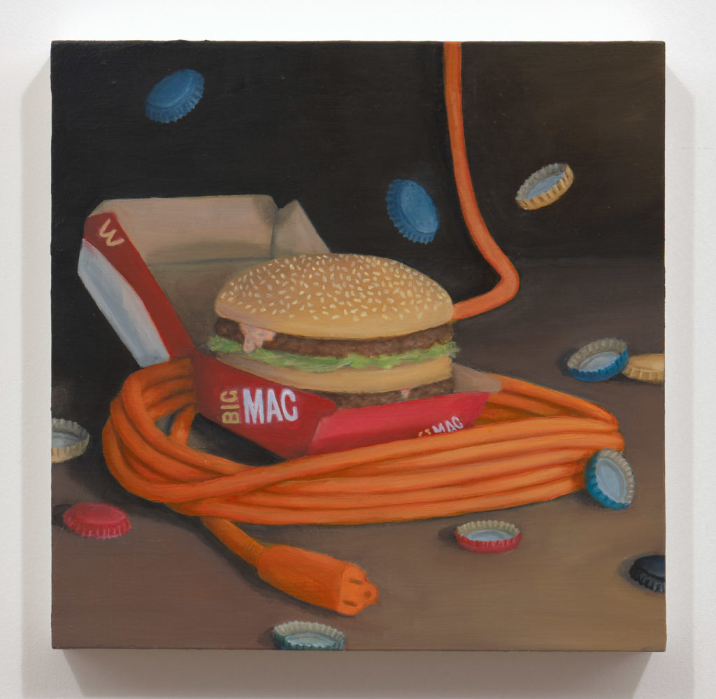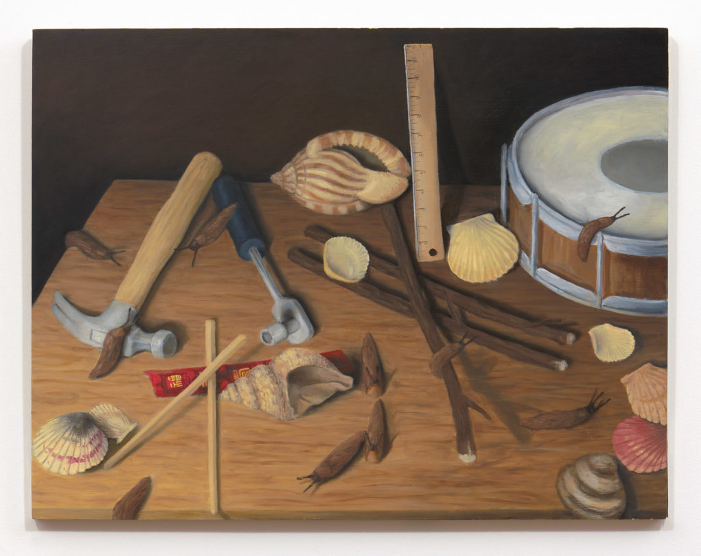 In rap, slang proliferates. Troy Chew is an avid listener and student of the genre, teasing out coded meanings across complex lyrical wordplay. As the lexicon sharpens in his ear and mind, Chew groups objects that carry particular definitions into distinctive still life paintings informed and agitated by Dutch and Flemish masters. The result is an assemblage of assorted artifacts that have likely never shared pictorial space on canvas, nor in real life–each painting a surreal visual dictionary for an ever-evolving musical language fundamental to his life and practice. All works in WWJZD, his first solo exhibition, include literal representations of words related to guns.